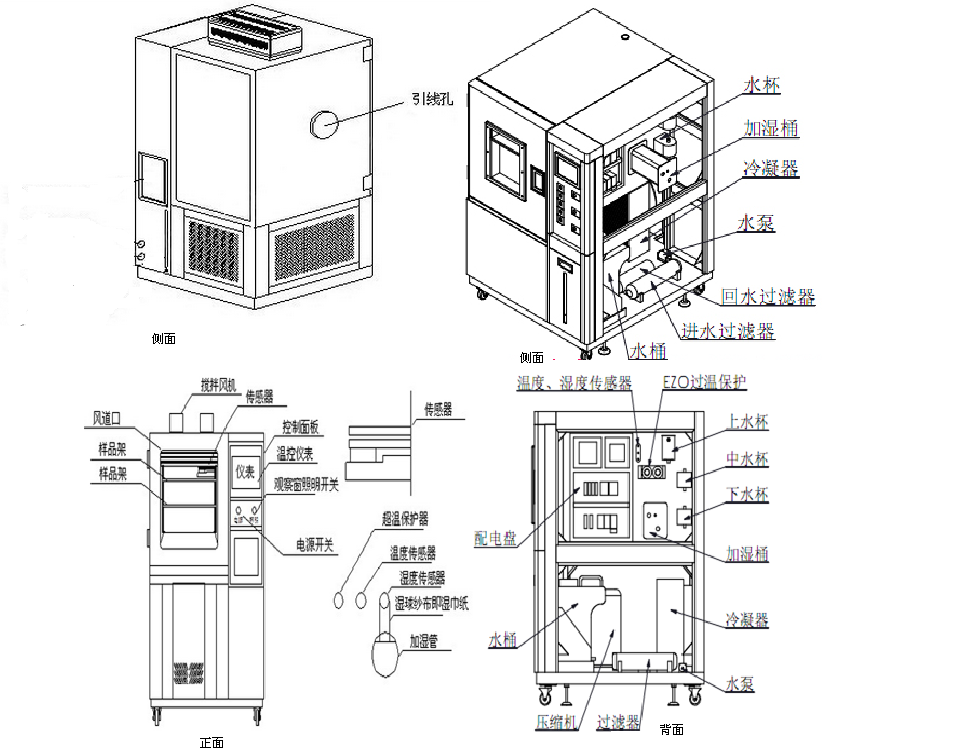試驗箱側面設有電纜穿線孔1個,尺寸為ф50mm |